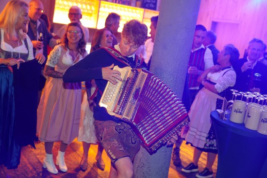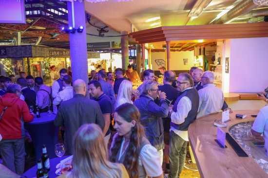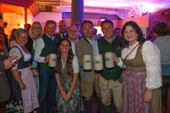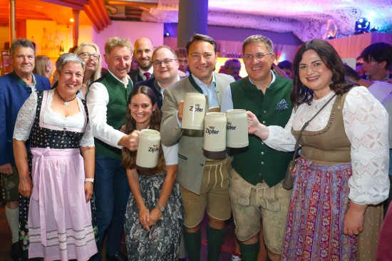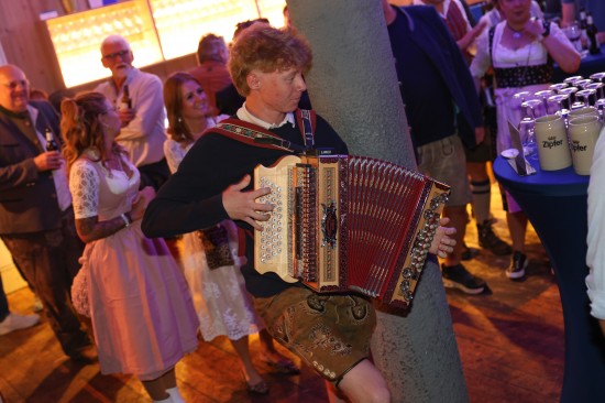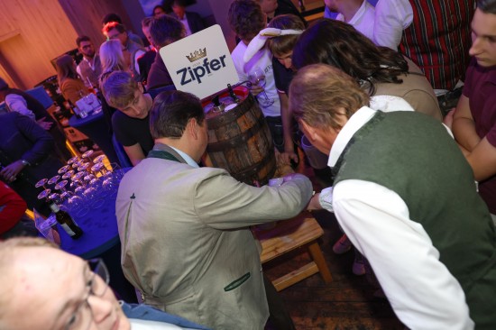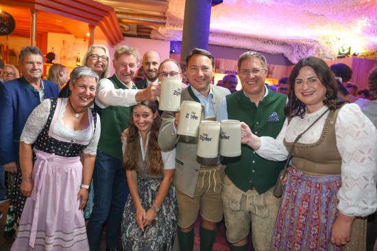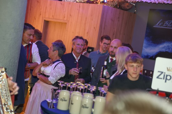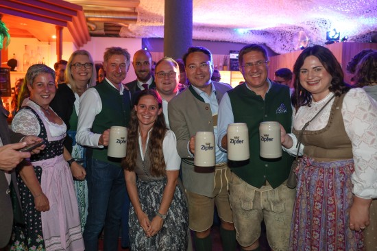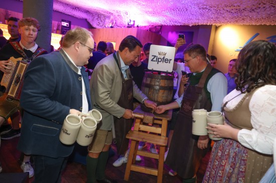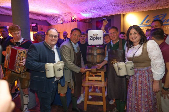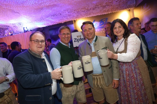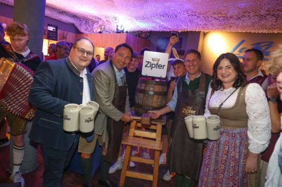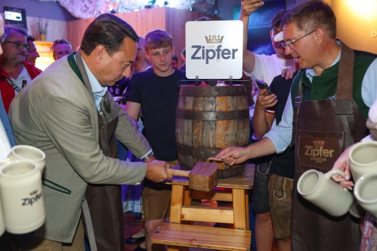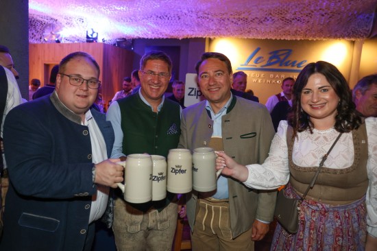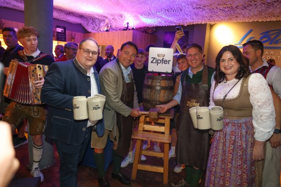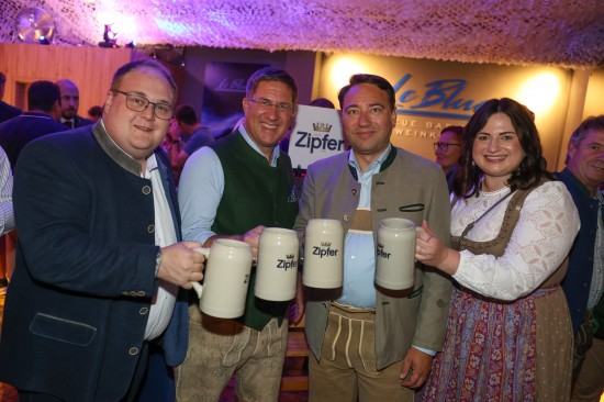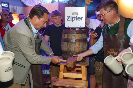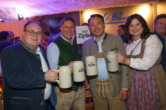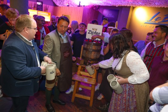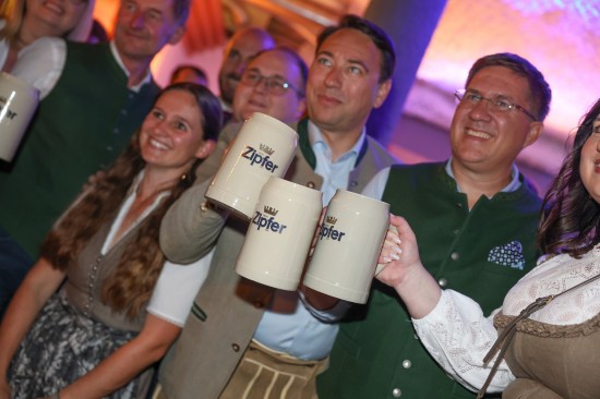 Landes- und Stadtpolitik beim "LeBlue"-Bieranstich zur Probebeleuchtung am Welser Volksfest vertreten
