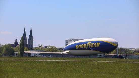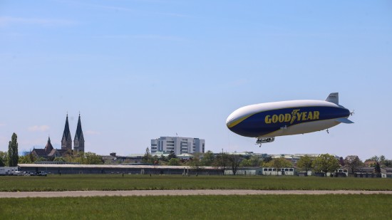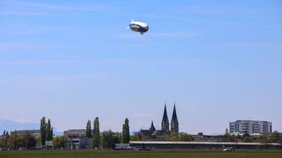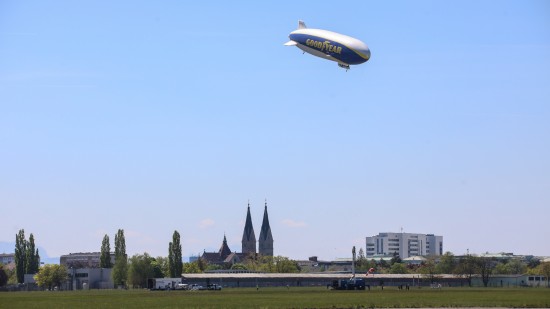 Wels. Montagnachmittag ist der Zeppelin mit dreitägiger Verspätung nun doch noch am Flugplatz in Wels-Neustadt gelandet. Der Anflug am Freitag musste aufgrund des starken Windes an der Alpennordseite abgebrochen werden.