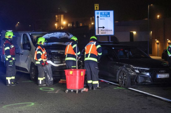 Abendverkehr: Auffahrunfall zwischen Kleintransporter und Auto auf Wiener Straße in Marchtrenk