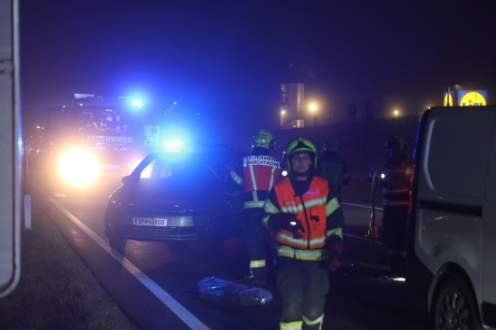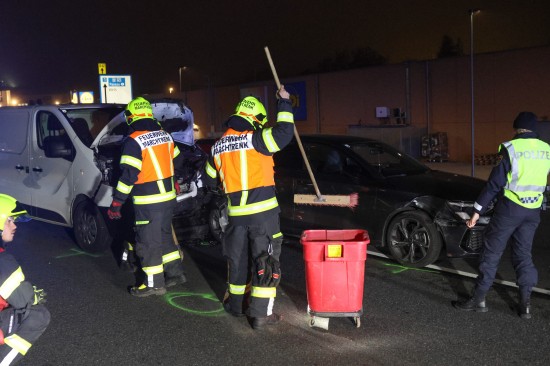 Der Unfall passierte am späten Donnerstagnachmittag auf der B1 Wiener Straße, Welser Straße, im Gemeindegebiet von Marchtrenk. Ein Kleintransporter, der in Fahrtrichtung Linz unterwegs war, krachte gegen das Heck eines PKW. Beide Fahrzeuge wurden dabei erheblich beschädigt. Die Feuerwehr wurde zu einem Crash mit drei beteiligten Fahrzeugen alarmiert. Vor Ort wurde die Unfallstelle abgesichert und mit den Aufräumarbeiten begonnen. Ausgelaufene Betriebsmittel wurden gebunden. Zwei Unfallfahrzeuge mussten vom Abschleppdienst abtransportiert werden.