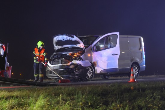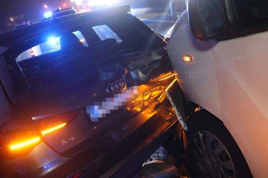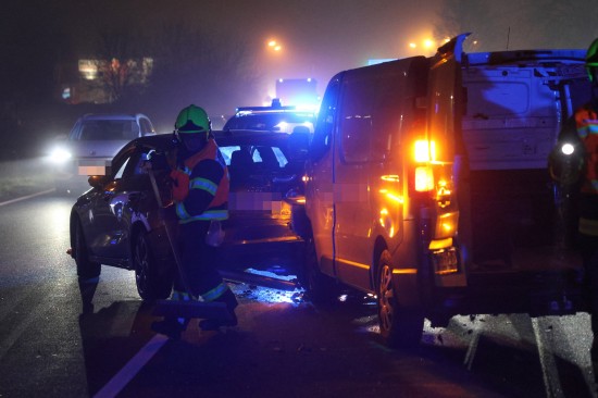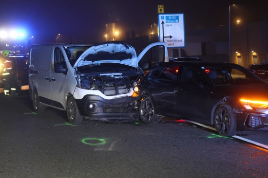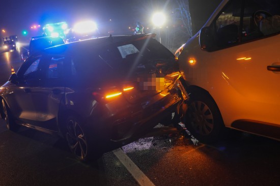 Marchtrenk. Ein heftiger Auffahrunfall zwischen einem Kleintransporter und einem PKW hat sich am späten Donnerstagnachmittag auf der B1 Wiener Straße in Marchtrenk (Bezirk Wels-Land) ereignet.