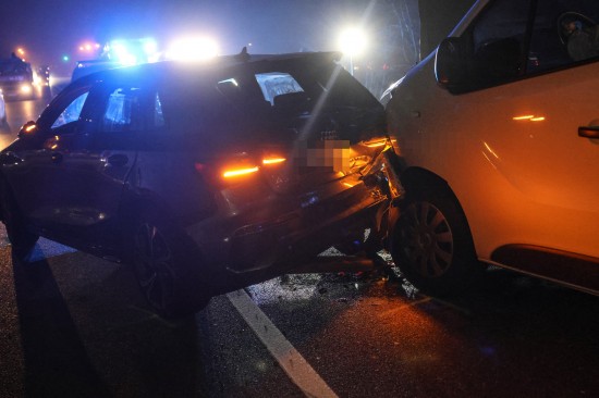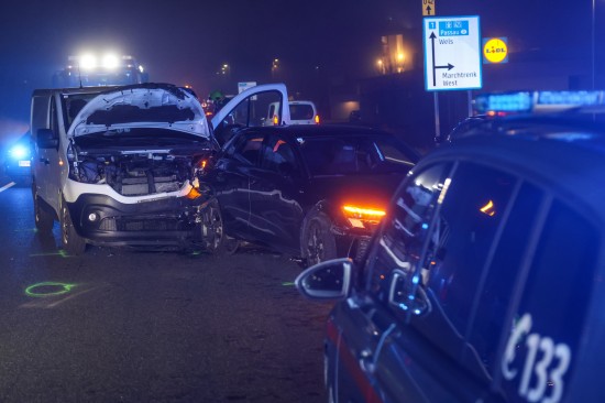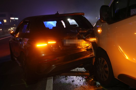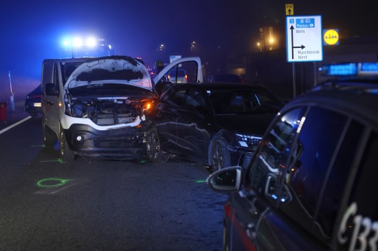 Ein heftiger Auffahrunfall zwischen einem Kleintransporter und einem PKW hat sich am späten Donnerstagnachmittag auf der B1 Wiener Straße in Marchtrenk (Bezirk Wels-Land) ereignet.