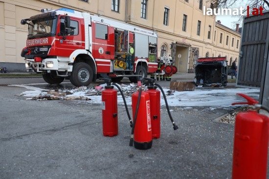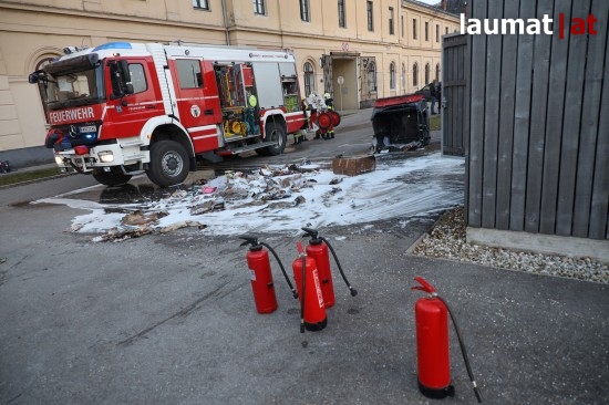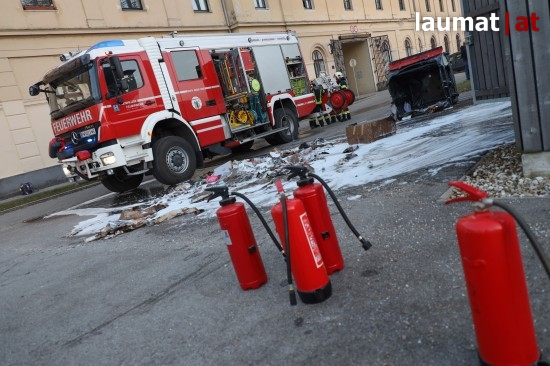 Die Feuerwehr stand Mittwochnachmittag bei einem Brand eines Altpapiercontainers in der Müllsammelinsel einer Wohnungsanlage in Wels-Lichtenegg im Einsatz.