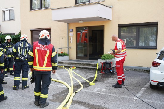 Leonding. Angebranntes Kochgut in der Küche einer Mehrparteienhauswohnung in Leonding (Bezirk Linz-Land) ist am frühen Donnerstagnachmittag Kochgut angebrannt. Drei Feuerwehren standen im Einsatz.
