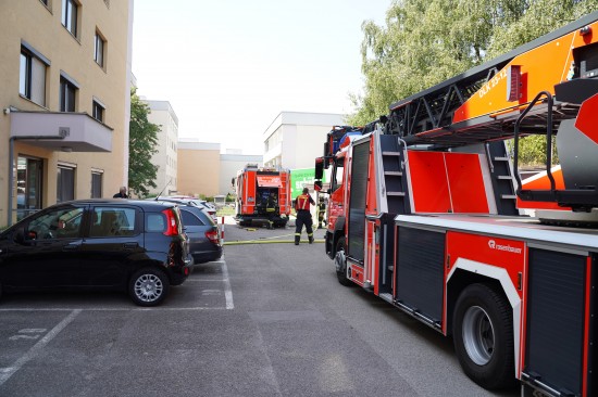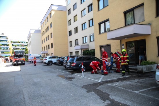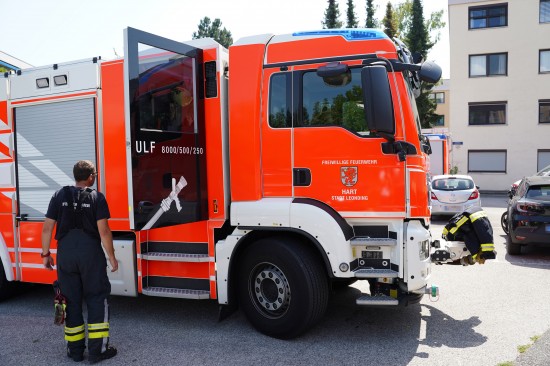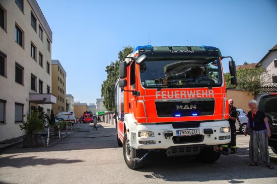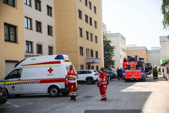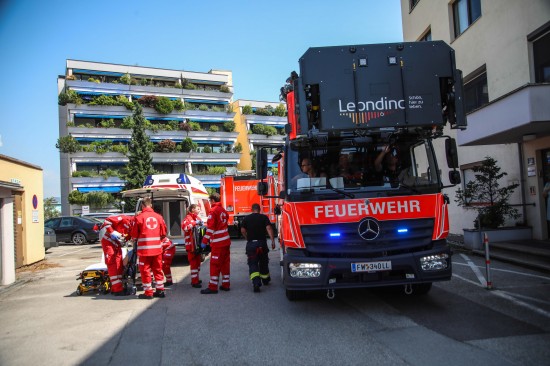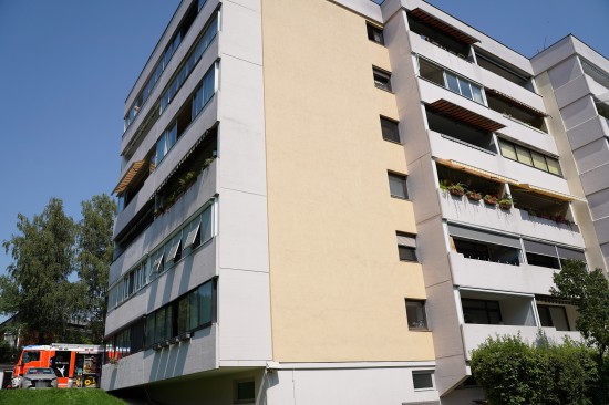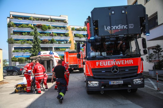 Die Einsatzkräfte der Feuerwehr wurden mit dem Einsatzbegriff "Brand Hochhaus" zu einem Mehrparteienwohnhaus im Gemeindegebiet von Leonding alarmiert. In der Küche einer Wohnung brannte Kochgut an. Erste Meldungen, wonach eine Person vom Balkon im fünften Obergeschoß zu retten sei, bestätigten sich zum Glück nicht. Die Bewohnerin der betroffenen Wohnung wurde ins Freie und in weiterer Folge zur Kontrolle ins Krankenhaus gebracht.