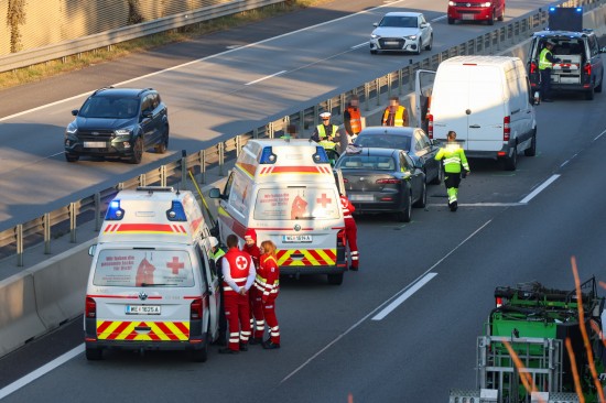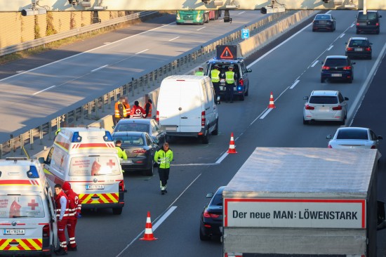 Ein Auffahrunfall mit drei beteiligten Fahrzeugen - zwei PKW und einem Kleintransporter - auf der A25 Welser Autobahn bei Wels-Puchberg hat Freitagnachmittag für viel Stau gesorgt.