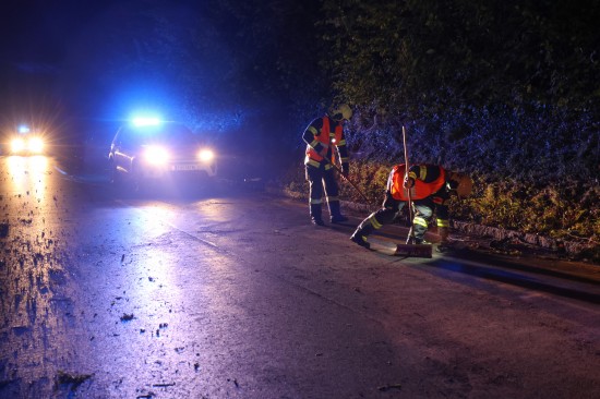 Aufräumarbeiten bei nächtlichem Verkehrsunfall in Thalheim bei Wels