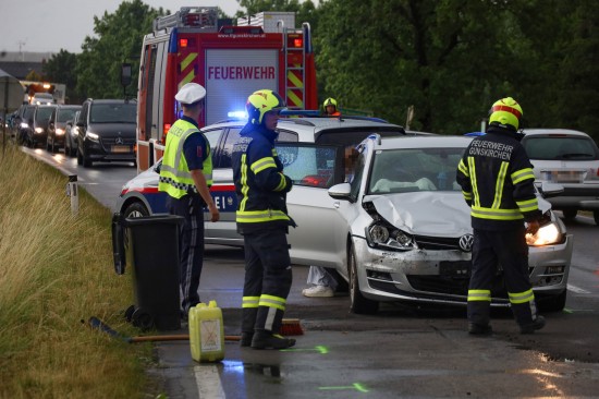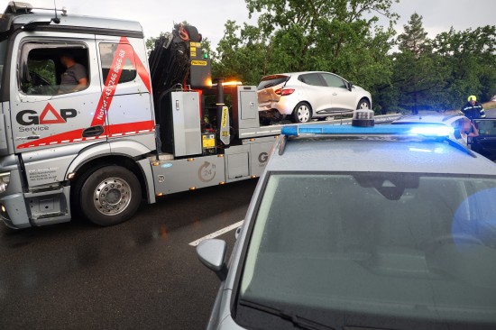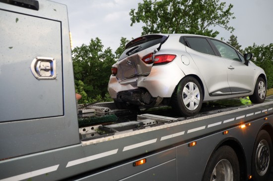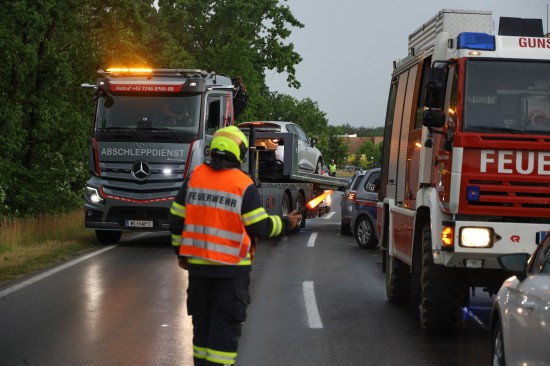 Aufräumarbeiten nach Auffahrunfall mit drei Fahrzeugen auf Wiener Straße bei Gunskirchen
