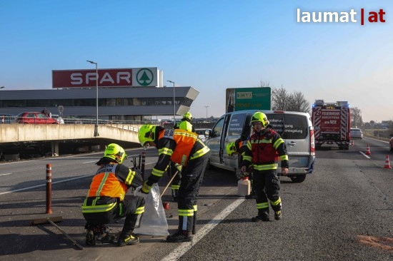 Aufräumarbeiten nach leichtem Verkehrsunfall auf Wiener Straße bei Marchtrenk