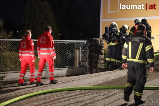 Ausgedehnter Küchenbrand in einem Wohnhaus in Enns sorgt für längeren Feuerwehreinsatz