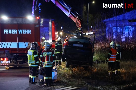 Der Unfall passierte Mittwochabend auf der L567 Thalheimer Straße, Ascheter Straße, im Gemeindegebiet von Thalheim bei Wels. Ein Autolenker verlor aus noch unbekannter Ursache im Bereich des Bahnübergangs an der Almtalbahn die Kontrolle über den Wagen und krachte gegen eine Standsäule der dortigen Lichtzeichenanlage. Entgegen erster Meldungen war zum Glück niemand im Fahrzeug eingeklemmt, auch kam der PKW nicht unmittelbar im Gleisbereich zum Stillstand. Die Feuerwehr sicherte die Unfallstelle ab und führte die Fahrzeugbergung durch. Verletzt wurde ersten Angaben zufolge offenbar niemand.
