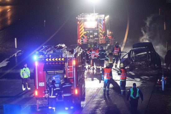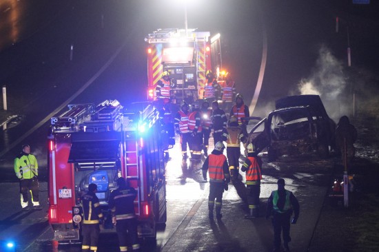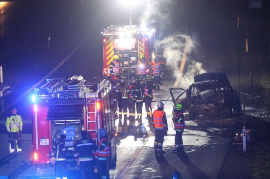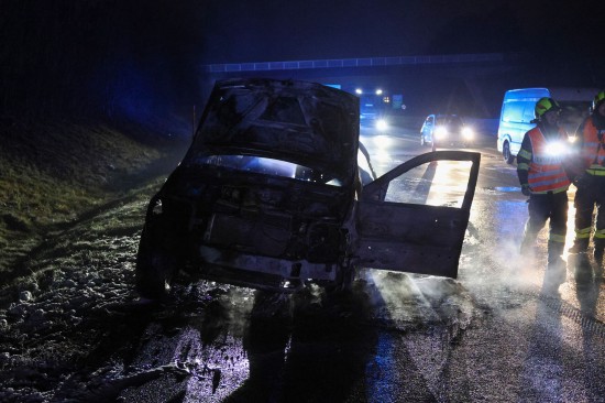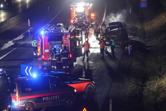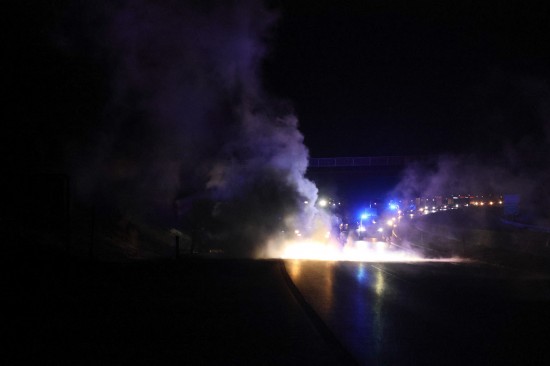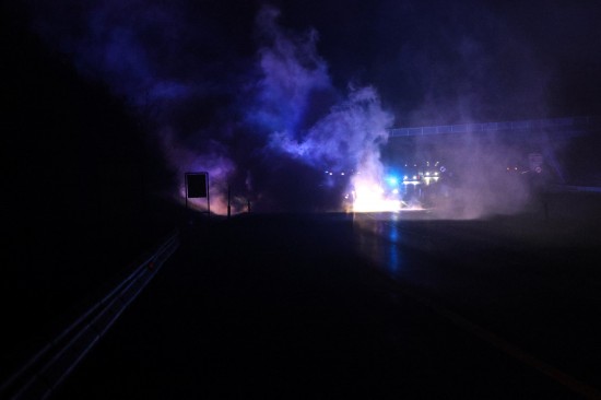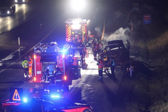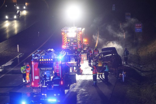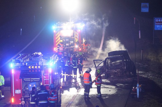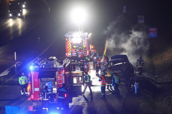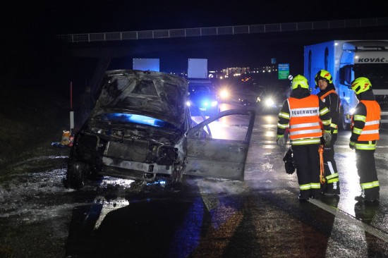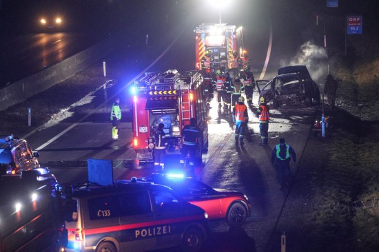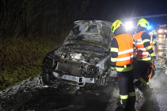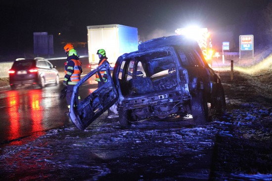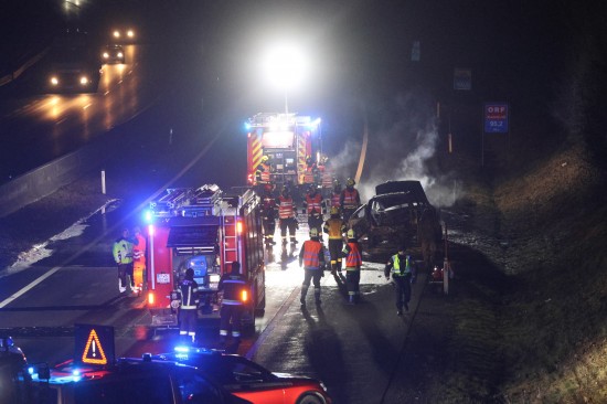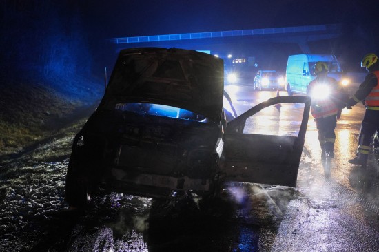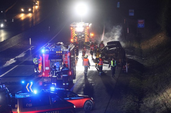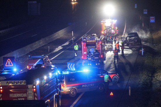 Ein Auto ist in der Nacht auf Dienstag auf der A8 Innkreisautobahn in Pichl bei Wels (Bezirk Wels-Land) ausgebrannt. Der Lenker konnte sich rechtzeitig in Sicherheit bringen.
