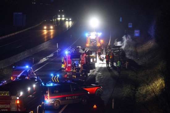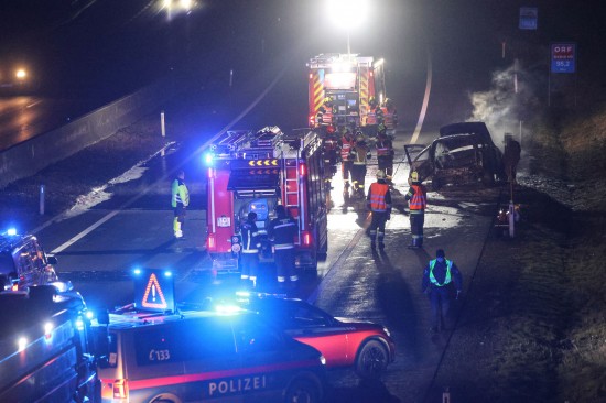"Am 16. Dezember 2025 gegen 02:30 Uhr kam es auf der A8 Innkreisautobahn, im Gemeindegebiet von Pichl bei Wels, zu einem PKW-Brand. Ein 46-jähriger Autofahrer aus Tschechien hörte ein explosionsartiges Geräusch und hielt daraufhin seinen PKW am Pannenstreifen an. Dort sah dieser unter seinen PKW und stellte ein defektes Getriebe fest. Der Lenker nahm auch kleinere Flammen war. Beim Eintreffen der Einsatzkräfte stand das Fahrzeug bereits in Vollbrand. Die Feuerwehr konnte den Brand löschen. Der Lenker wurde dabei nicht verletzt."