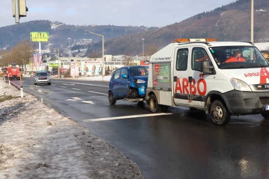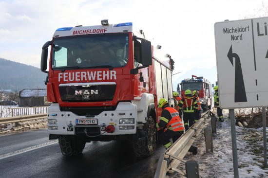 In Micheldorf in Oberösterreich (Bezirk Kirchdorf an der Krems) ist Dienstagmittag ein Auto von der B138 Pyhrnpass Straße abgekommen.