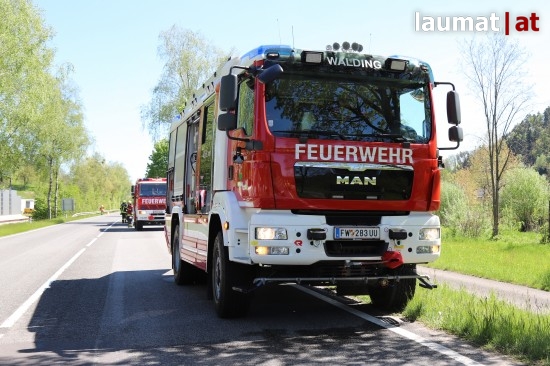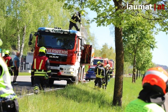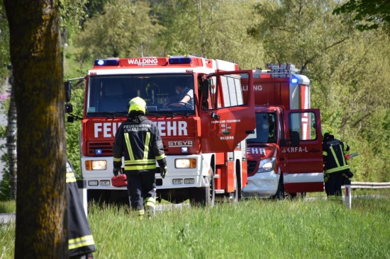 Der Unfall ereignete sich Sonntagnachmittag auf der Rohrbacher Straße im Gemeindegebiet von Walding. Ein Auto ist aus bisher unbekannten Gründen von der Fahrbahn der Rohrbacher Straße abgekommen und hat sich im Grünstreifen zwischen Straße, Geh- und Radweg überschlagen. Zwei Feuerwehren wurden zur Menschenrettung alarmiert. Unmittelbar eingeklemmt war entgegen erster Meldungen aber zum Glück offenbar niemand.