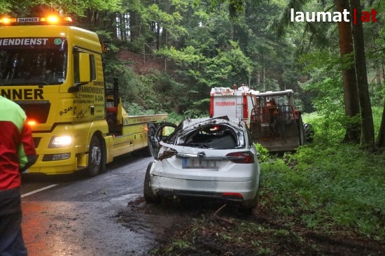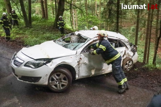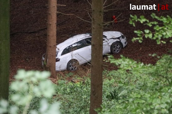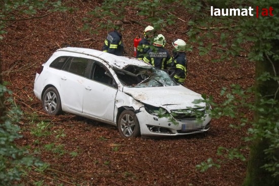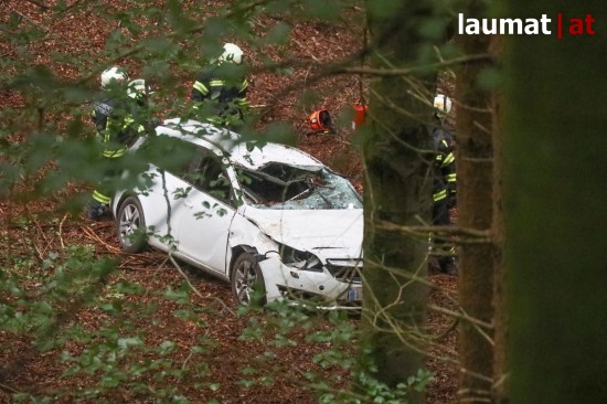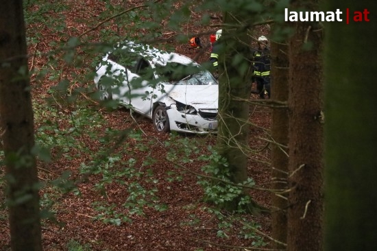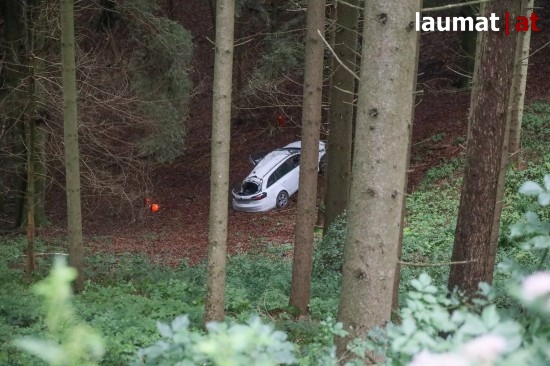 Auto bei Eberschwang von Straße abgekommen und in steiles Waldstück abgestürzt