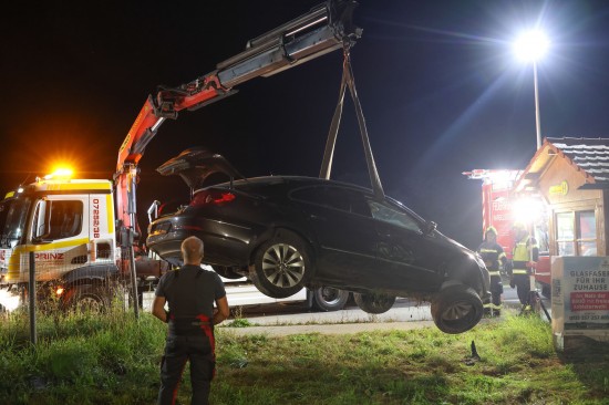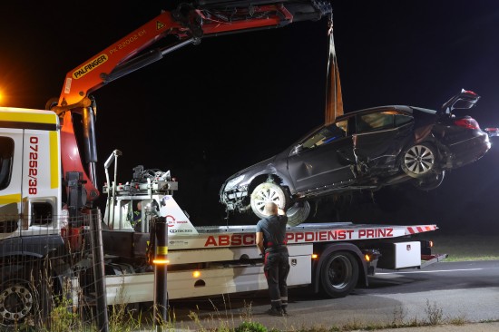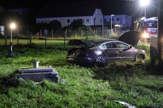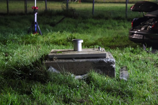 Auto bei Hargelsberg von Fahrbahn abgekommen und gegen Schachteinfassung geprallt