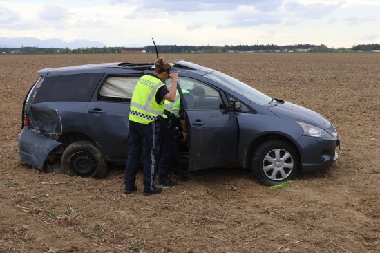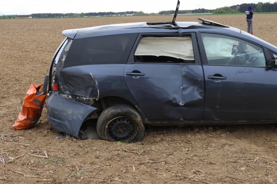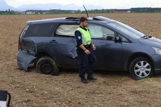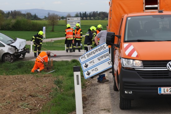 Auto bei heftigem Kreuzungscrash in Sipbachzell in angrenzendes Feld geschleudert