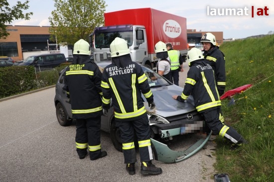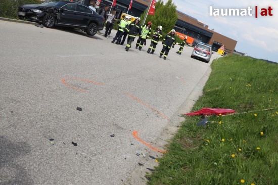 Ein PKW ist Montagnachmittag bei einer Kreuzungskollision auf einer Privatstraße in Sattledt (Bezirk Wels-Land) umgekippt. Die Feuerwehr stand bei den Aufräumarbeiten im Einsatz.