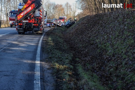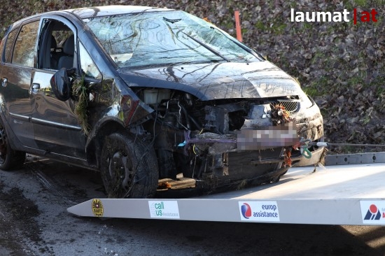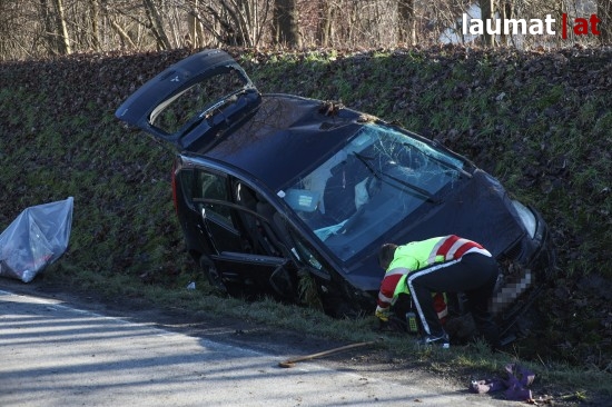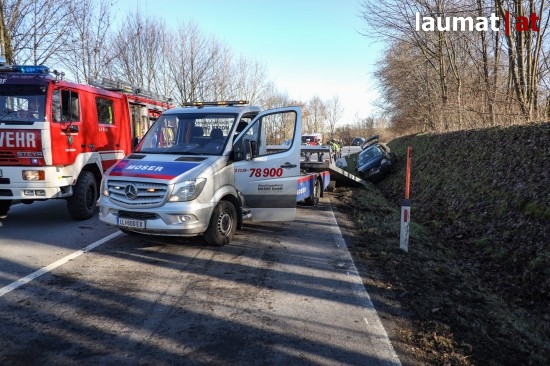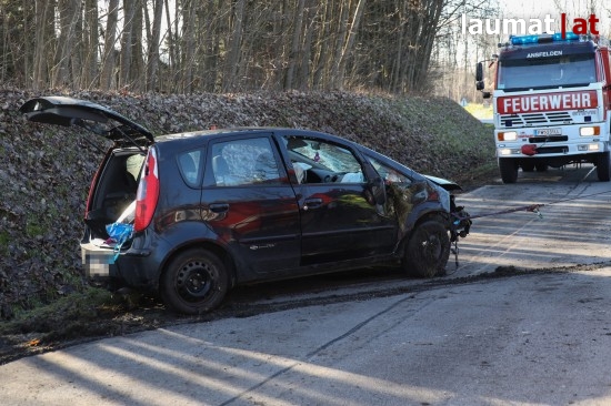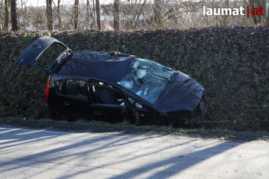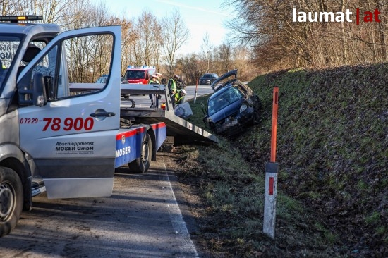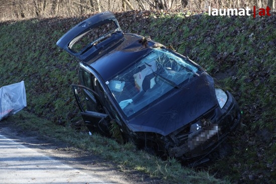 Auto bei Unfall in Ansfelden in der Böschung gelandet