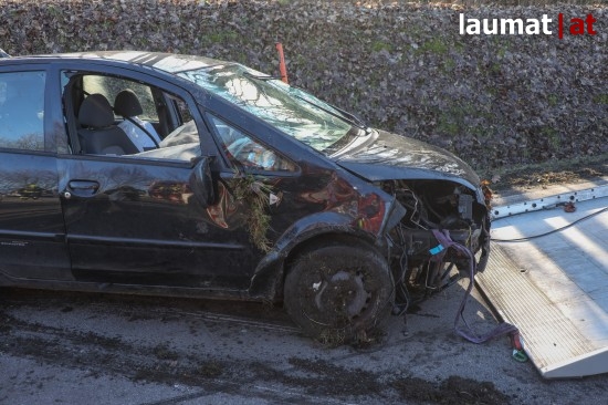 In Ansfelden (Bezirk Linz-Land) ist Samstagnachmittag ein Auto von der Straße abgekommen und im Böschungsbereich gelandet.