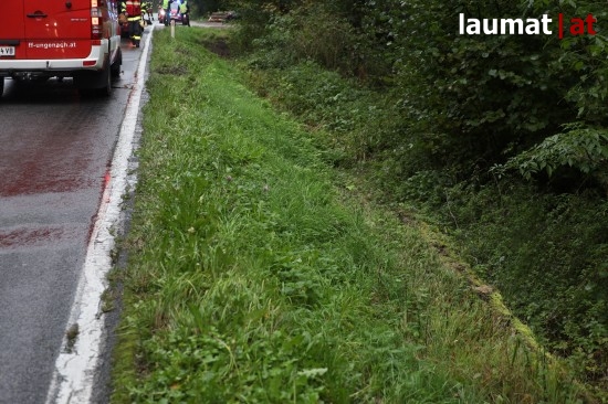 Der PKW-Lenker war ersten Angaben nach auf der B143 Hausruckstraße von Ungenach kommend in Fahrtrichtung Vöcklabruck unterwegs, als er kurz nach der Gemeindegrenze rechts von der Fahrbahn abgekommen ist. Der PKW überschlug sich anschließend im Bereich eines Schotterplatzes in das tiefergelegene Bachbett des Diesenbach Zubringers. Der Lenker konnte von Ersthelfern aus dem Unfallwrack befreit werden. Die zur Menschenrettung alarmierten Einsatzkräfte der zwei umliegenden Feuerwehren führten dann nach dem Eintreffen am Einsatzort die Bergung des Unfallfahrzeuges durch.