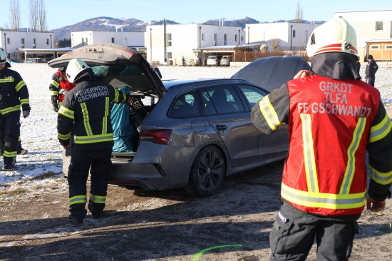 "Ein 28-Jähriger aus dem Bezirk Gmunden verursachte am 01. Jänner 2025 gegen 09:45 Uhr einen Verkehrsunfall. Der Mann war im Ortsgebiet von Gschwandt auf der Steiger Straße Richtung Baumgarten unterwegs. Trotz gerader Straßenführung verlor er die Kontrolle über sein Auto, geriet ins Schleudern und krachte gegen eine Gartenmauer. Die Mauer durchbrach er und kam auf dem Dach zum Liegen. Der 28-Jährige erlitt leichte Verletzungen und wurde ins Klinikum Gmunden eingeliefert. Ein Alkotest ergab 1,56 Promille. Er wird angezeigt."