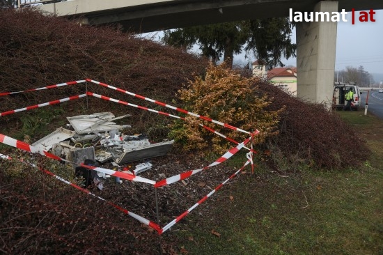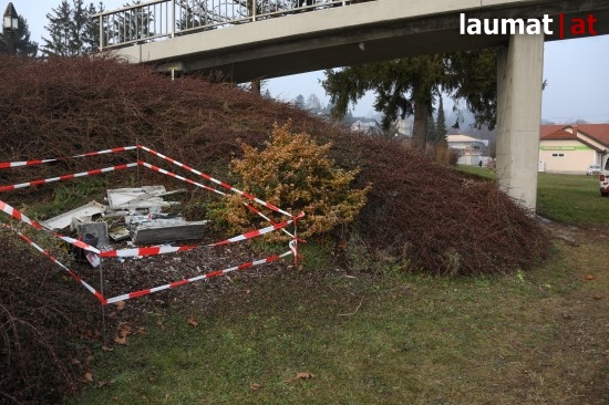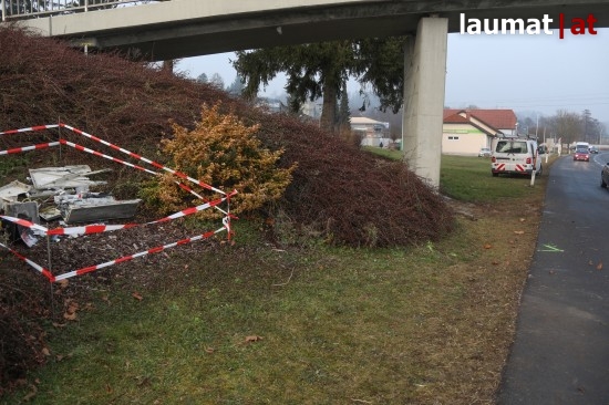 Auto bei Verkehrsunfall in Kematen an der Krems gegen Brückenpfeiler und Stromkasten geprallt