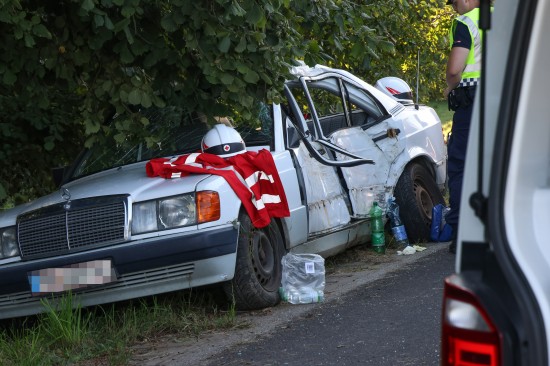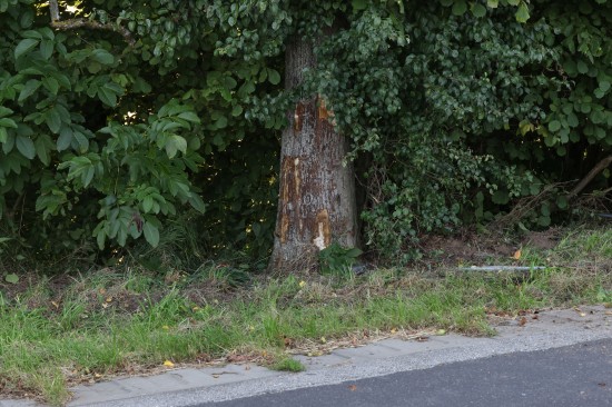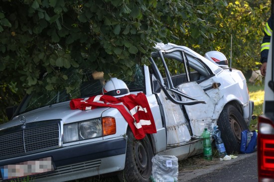 Auto bei Verkehrsunfall in Pilsbach mit großer Wucht seitlich gegen Baum geprallt
