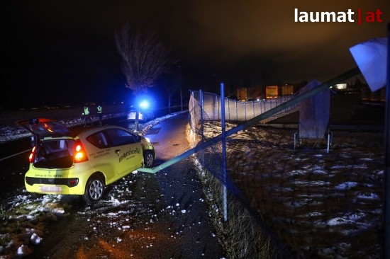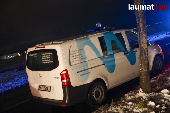 Ein Essenszustellfahrzeug ist Sonntagabend in Wels-Neustadt von der Straße abgekommen und gegen eine Straßenlaterne gekracht.