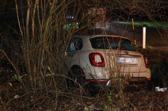 Wels. In Wels-Oberthan ist am Mittwochabend eine Autolenkerin aus noch unbekannten Gründen mit ihrem Auto in einem Kreuzungsbereich von der Straße abgekommen und in einem Bachbett gelandet.