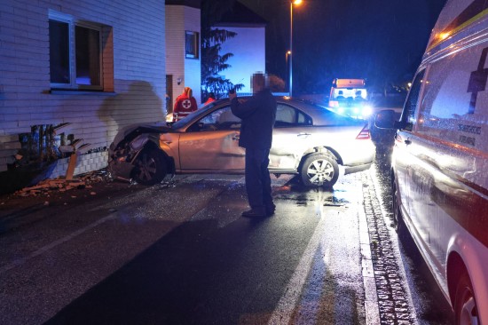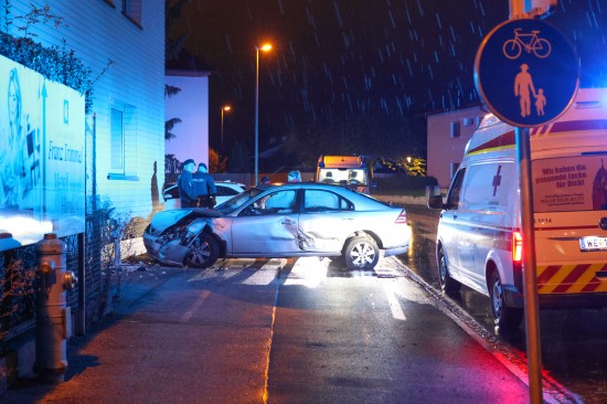 Wels. In Wels-Vogelweide hat sich Mittwochabend ein Verkehrsunfall ereignet, bei dem ein PKW nach einer Kollision gegen eine Hausfassade gekracht ist.