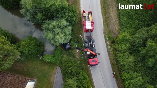 Ein PKW-Lenker ist aus bisher unbekannten Gründen zuerst rechts aufs Bankett der Straße gekommen und dann linksseitig durch Sträucher mit dem vorderen Bereich im Zeilinger Bach und dem angrenzenden Teich gelandet. Der PKW-Lenker blieb zum Glück unverletzt. Die Feuerwehr hob das Fahrzeug aus dem Gewässer und stellte es auf der Fahrbahn für den Abtransport durch ein Abschleppunternehmen bereit.
