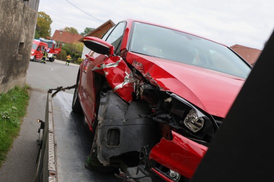 Auto gegen Gebäudeeck: Vermeintlicher Brand in Micheldorf in Oberösterreich war Verkehrsunfall