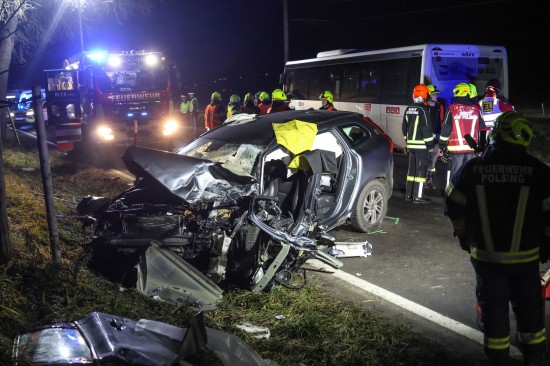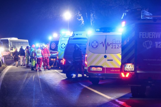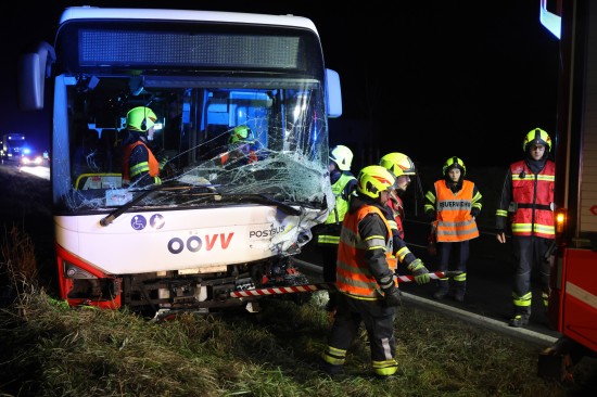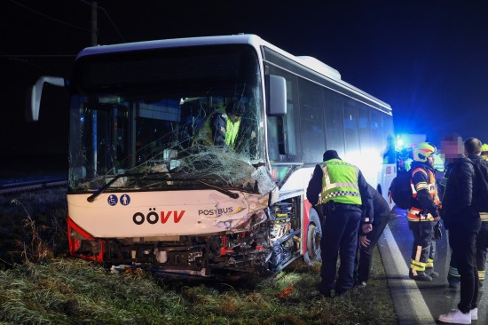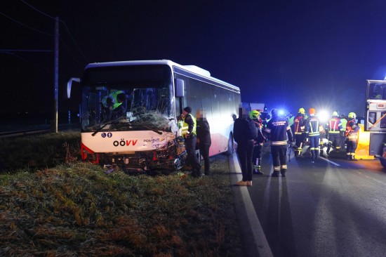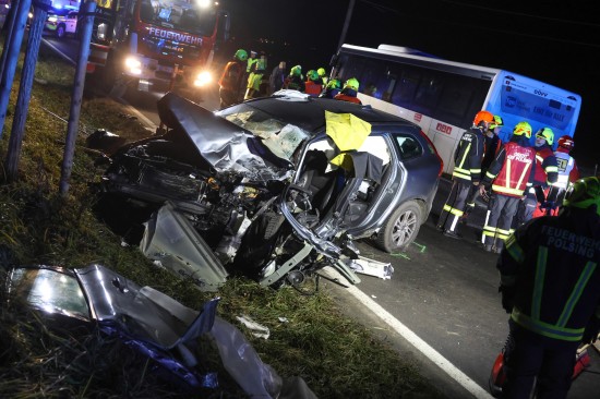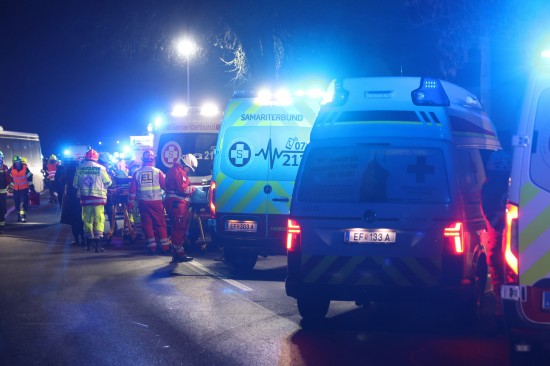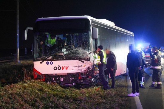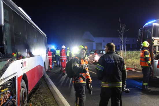 "Ein 52-jähriger bosnischer Staatsbürger aus Wels fuhr mit seinem Linienbus am 04. Dezember 2025 gegen 16:40 Uhr auf der B129 Eferdinger Straße im Gemeindegebiet von Alkoven Richtung Linz. Zur selben Zeit war ein 70-jähriger Autolenker aus dem Bezirk Eferding gemeinsam mit seiner 67-jährigen Ehefrau in diesem Bereich in der Gegenrichtung unterwegs. Aus bislang unbekannter Ursache kam es auf Höhe Straßenkilometer 19,120 zu einem Zusammenstoß der beiden Fahrzeuge. Der Busfahrer hatte noch versucht auszuweichen, was jedoch nicht mehr gelang. Durch die Kollision wurde das Ehepaar im Wagen eingeklemmt und musste von der Feuerwehr befreit werden. Die beiden wurden schwer verletzt und nach der Erstversorgung in das Unfallkrankenhaus Linz beziehungsweise Kepler Universitätsklinikum eingeliefert. Der 52-jährige Buslenker sowie die weiteren neun Fahrgäste, welche sich im Bus befanden, wurden leicht verletzt, konnten das Fahrzeug jedoch selbständig verlassen. Der 52-Jährige und ein Fahrgast wurden zur Behandlung in das Kepler Universitätsklinikum gebracht."