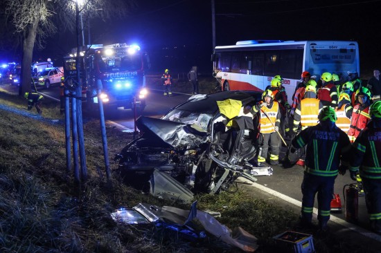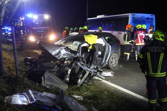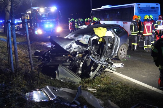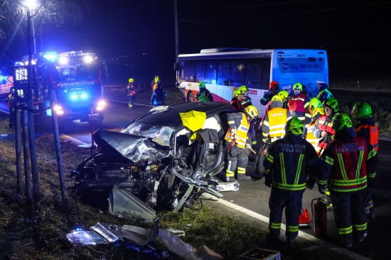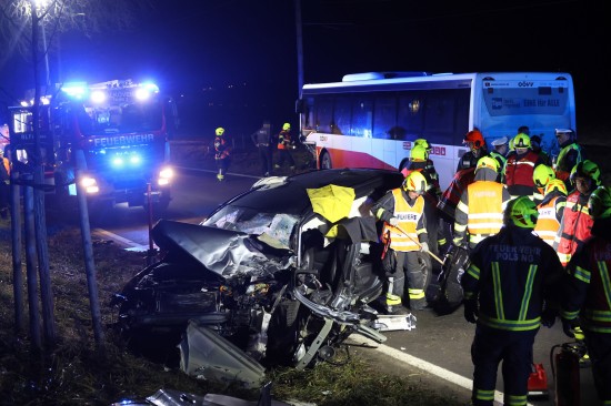 Alkoven. Ein schwerer Verkehrsunfall zwischen einem PKW und einem Linienbus hat sich Donnerstagnachmittag auf der B129 Eferdinger Straße bei Alkoven (Bezirk Eferding) ereignet.