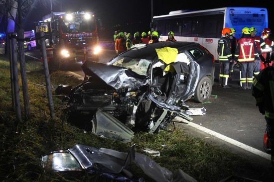 Ein schwerer Verkehrsunfall zwischen einem PKW und einem Linienbus hat sich Donnerstagnachmittag auf der B129 Eferdinger Straße bei Alkoven (Bezirk Eferding) ereignet.