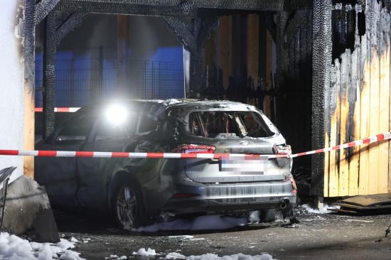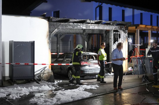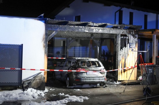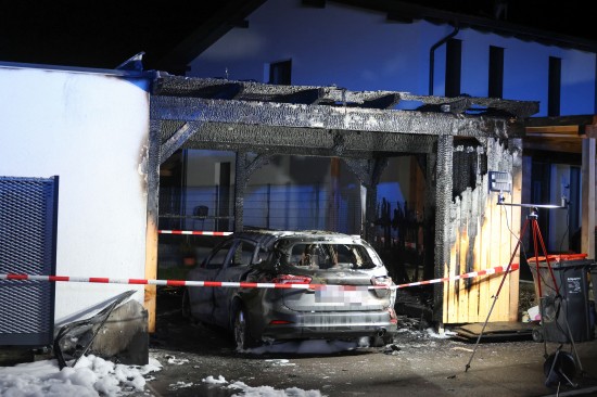 Auto in Ottnang am Hausruck mitsamt Carport nahezu in Vollbrand