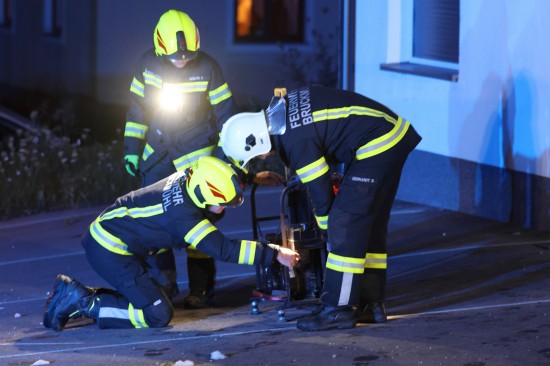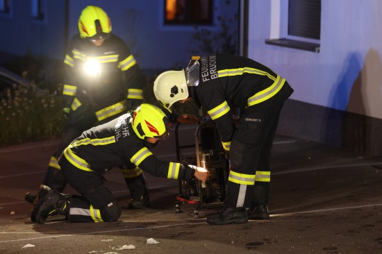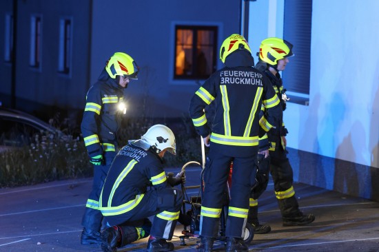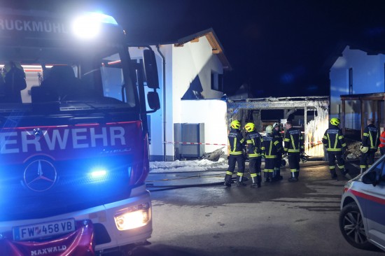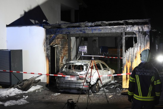 Die Feuerwehr wurde am späten Montagabend mit dem Einsatzstichwort "Brand Fahrzeug in Gebäude" zu einem Mehrparteienwohnhaus in die Ortschaft Bruckmühl gerufen. Ein PKW stand dort offensichtlich in einem Carport nahezu in Vollbrand. Das Carport stand ebenso in Flammen und das Feuer drohte auf das Haus überzugreifen. Die Feuerwehr konnte das Übergreifen der Flammen auf das Wohngebäude glücklicherweise noch verhindern, sodass sich der Brand auf den PKW und das Carport beschränkte. Nachdem "Brand aus" gegeben werden konnte, nahm die Polizei die Brandermittlungen auf.