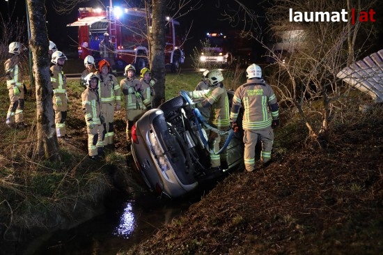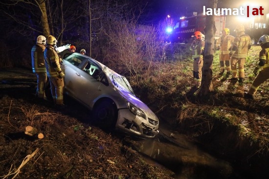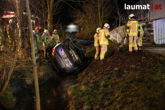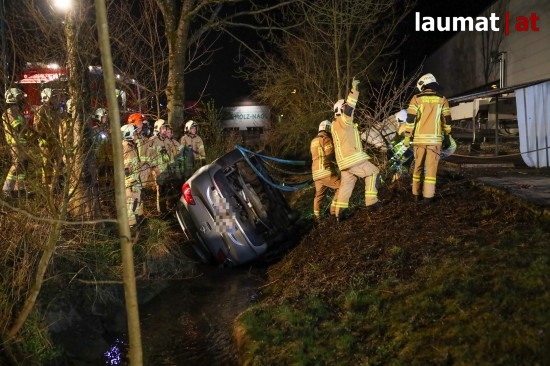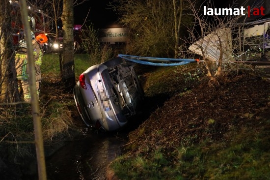 Auto in Ried im Innkreis nach Irrfahrt über Fußweg in Bach gestürzt