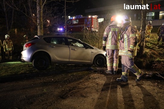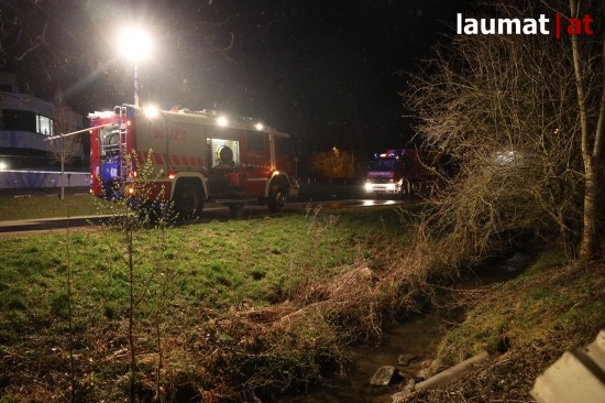 In Ried im Innkreis ist am späten Freitagabend ein PKW der scheinbar von einem Firmenparkplatz ausfahren wollte, auf einen Fußweg gelangt, nach einer Irrfahrt stürzte der PKW in den Ottenbach.