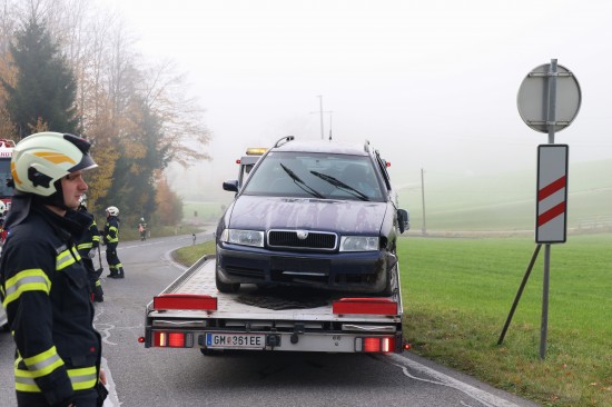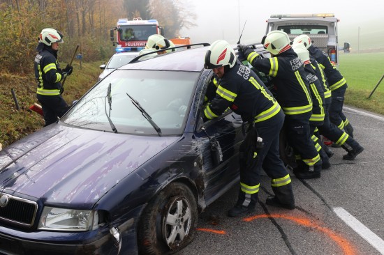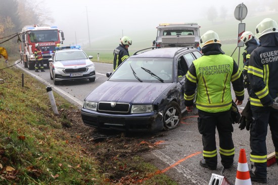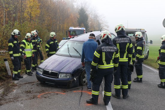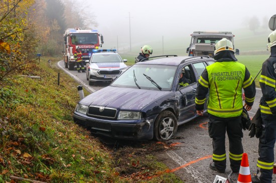 Auto in Seitenlage: PKW-Lenker bei Verkehrsunfall in Gschwandt verletzt