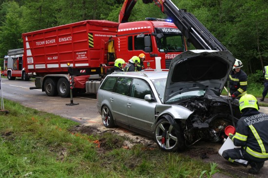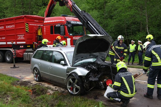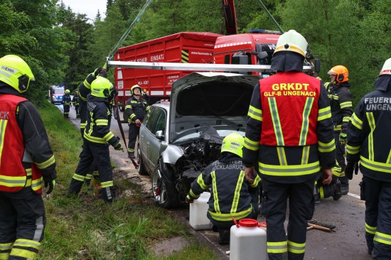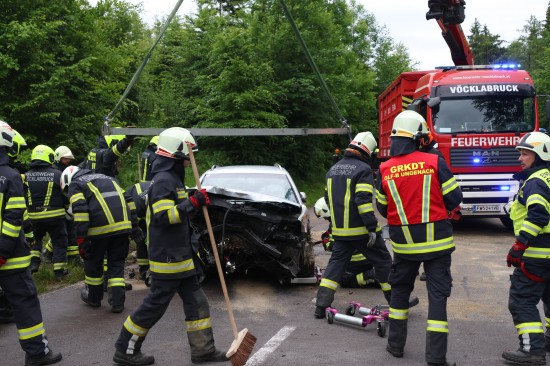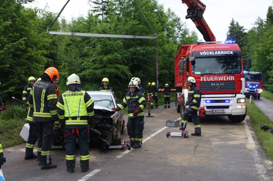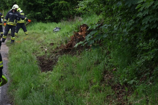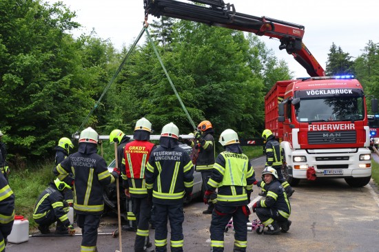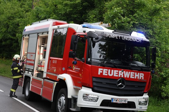 Ein PKW war offenbar auf der B143 Hausruckstraße im Gemeindegebiet von Vöcklabruck in Fahrtrichtung Ungenach unterwegs, als das Fahrzeug aus noch unbekannten Gründen von der Fahrbahn abgekommen, im Böschungsbereich gegen einen Wurzelstock geprallt und in seitlicher Lage zwischen Böschung und Fahrbahn zum Stillstand gekommen ist. Die Einsatzkräfte zweier Feuerwehren wurden zur Personenrettung nach einem Verkehrsunfall alarmiert. Ebenso im Einsatz standen Rettungsdienst, Notarzt und die Polizei. Die Feuerwehr führte in weiterer Folge die Bergung des verunfallten PKW durch. Das Fahrzeug wurde von der Straße verbracht und für die Abholung durch den Abschleppdienst bereitgestellt.