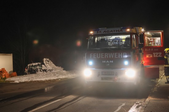 Als PKW-Brand stellte sich in der Nacht auf Sonntag ein gemeldeter Gebäudebrand in St. Agatha (Bezirk Grieskirchen) heraus. Zwei Feuerwehren waren im Einsatz.
