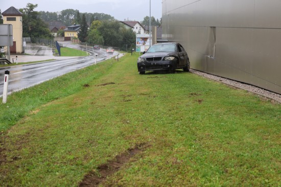 In Wartberg an der Krems (Bezirk Kirchdorf an der Krems) ist am Freitagnachmittag ein PKW von der Straße abgekommen und hat sich gegen die Fassade eines Supermarktgebäudes überschlagen.
