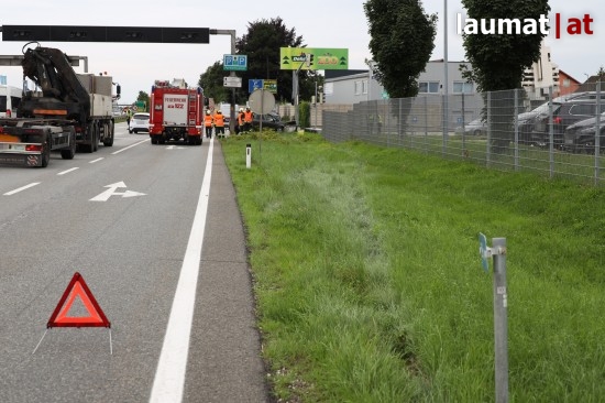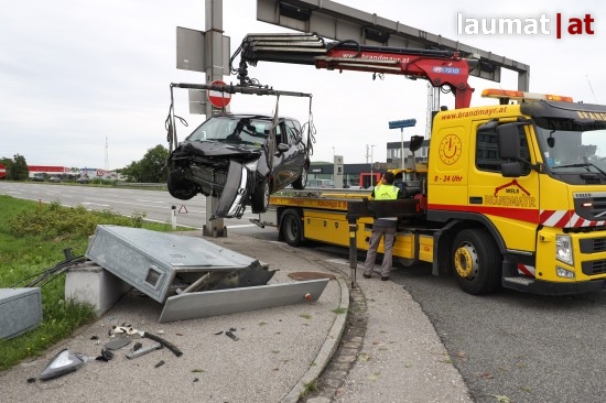 Der Unfall ereignete sich auf der Wiener- beziehungsweise Linzer- und Hans-Sachs-Straße bei der Kreuzung mit der Mathias-Schönerer- und der Uhlandstraße im Welser Stadtteil Schafwiesen. Der PKW kam aus bisher unbekannten Gründen von der Straße ab, fuhr rund 50 Meter im Grünstreifen entlang der Fahrbahn und krachte schließlich frontal gegen den Steuerungskasten der dortigen Verkehrslichtsignalanlage. Der Autolenker wurde bei dem Unfall verletzt. Die Feuerwehr, der Rettungsdienst, Polizei, Abschleppunternehmen, ein Techniker des Energieversorgungsunternehmens, die Straßenmeisterei sowie mehrere Techniker der Ampelanlagenfirma standen im Einsatz. Der Steuerungskasten wurde bei dem Crash vom Fundament gerissen und zerstört. Die Technik wurde stromlos geschalten.