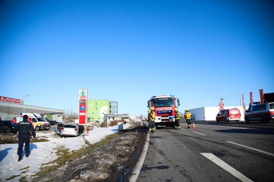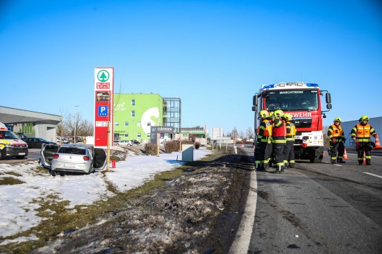 Auto nach Crash auf Wiener Straße bei Marchtrenk im Straßengraben gelandet