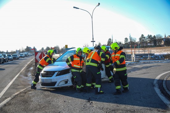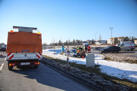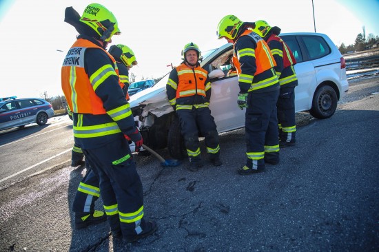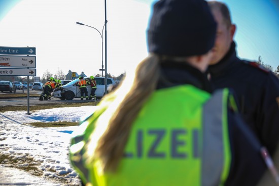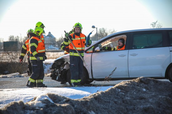 Der Unfall passierte am frühen Sonntagnachmittag auf der B1 Wiener Straße, Welser Straße am Kreuzungspunkt mit der L534 Marchtrenker Straße und der L1227 Paschinger Straße in Marchtrenk. Aus noch unbekanntem Grund kam es dort zu einem Zusammenstoß zwischen zwei PKW. Ein Auto kam auf der Straße zum Stillstand, das zweite Fahrzeug wurde in den Straßengraben geschleudert. Eine Person musste vom Rettungsdienst betreut werden. Aufgrund der eisigen Temperaturen wurden die weiteren Unfallbeteiligten vom Rettungsdienst ebenso betreut, sie blieben jedoch offensichtlich unverletzt. Die Feuerwehr wurde zum Freimachen von Verkehrswegen alarmiert und führte dann die Aufräumarbeiten an der Unfallstelle durch.
