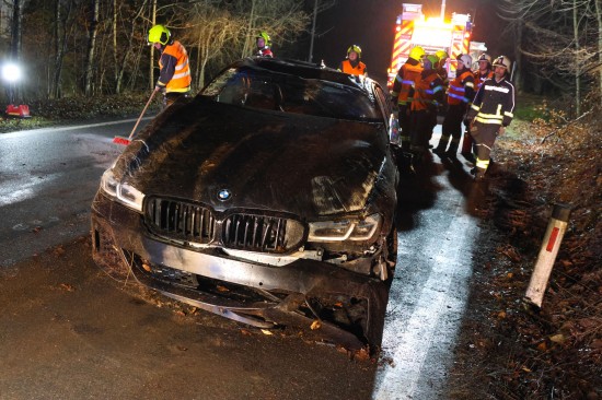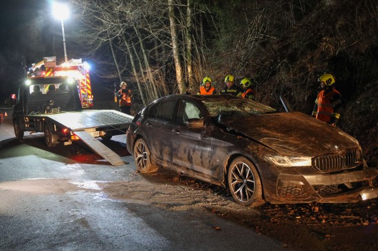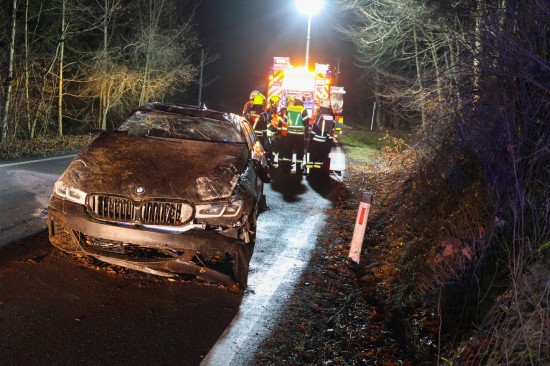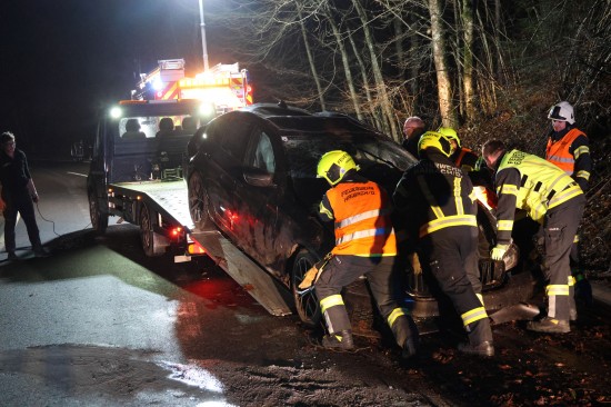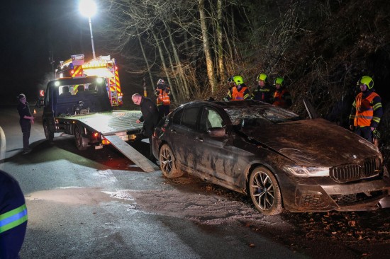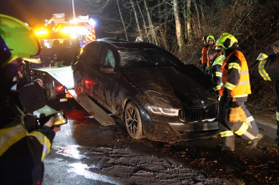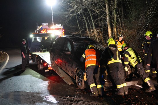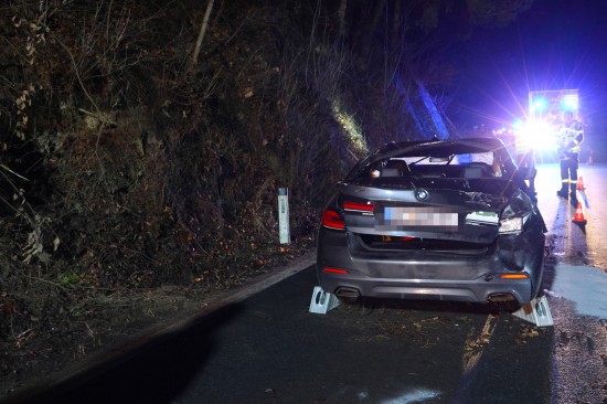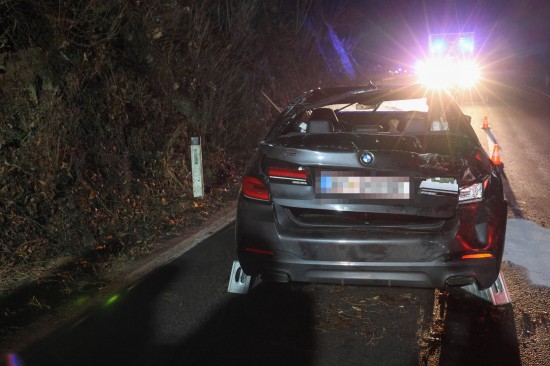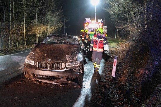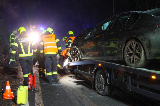 Der Unfall passierte am späten Freitagabend auf der B130 Nibelungenstraße, Gemersdorf im Gemeindegebiet von Haibach ob der Donau. Ein PKW war offenbar in Fahrtrichtung Eferding unterwegs, als er auf Höhe der Kreuzung Schlögenleiten in einem Kurvenbereich links von der Fahrbahn abkam. Der PKW touchierte einen Baum und fuhr auf die felsdurchsetzte Böschung, woraufhin sich der PKW überschlug, zurück auf die Fahrbahn geschleudert wurde und auf dem Dach liegend noch ein Stück weit dahinschlitterte, ehe das Fahrzeug so zum Stillstand kam. Die Einsatzkräfte dreier Feuerwehren wurden zur Personenrettung alarmiert. Die zwei Insassen waren beim Eintreffen der Feuerwehr bereits außerhalb des Fahrzeuges, beide wurden offenbar zum Glück nur eher leicht verletzt und nach der Erstversorgung durch Rettung und Notarzt ins Krankenhaus gebracht. Die Feuerwehr stellte den PKW wieder auf die Räder, das Unfallfahrzeug wurde in weiterer Folge vom Abschleppdienst abtransportiert. Ausgelaufene Betriebsmittel wurden gebunden.