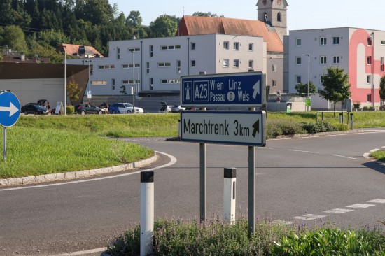 In Weißkirchen an der Traun (Bezirk Wels-Land) fuhr am Samstagnachmittag ein Autolenker sozusagen durch einen Kreisverkehr. Das Fahrzeug wurde dabei beschädigt.